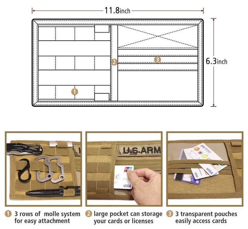Our MOLLE EDC Visor Panel is designed to keep your important items within easy reach and provides a more organized, accessible and secure platform. It is simple and convenient solution for organizing your vehicle's front area, keeping it mess-free all the time.